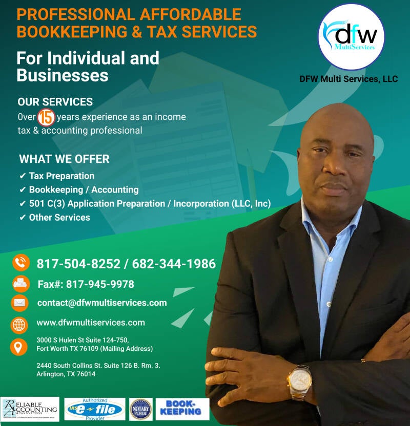 DFW Multi Services provides accounting, bookkeeping, business counseling and tax services