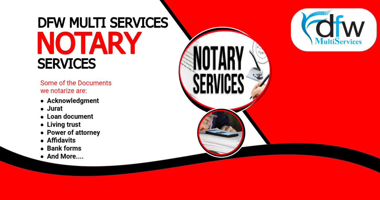 We are a Licensed Notary Public by the State of Texas. At DFW Multi Services, we offer a professional and responsive notarial service for individuals and businesses. Notary services are provided from our offices as well as a mobile service by arrangement.